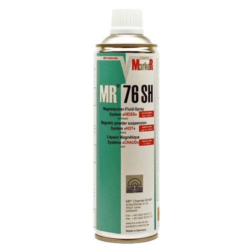 • MR 76 SH Magnetická prášková suspénzia čierna, System "HOT" slúži na označenie trhlín pri výkonávaní nie fluorescenčných magnetických práškových metódach, vysoko citlivé testovacie médium pre teplotné rozsahy od 50-130 °C