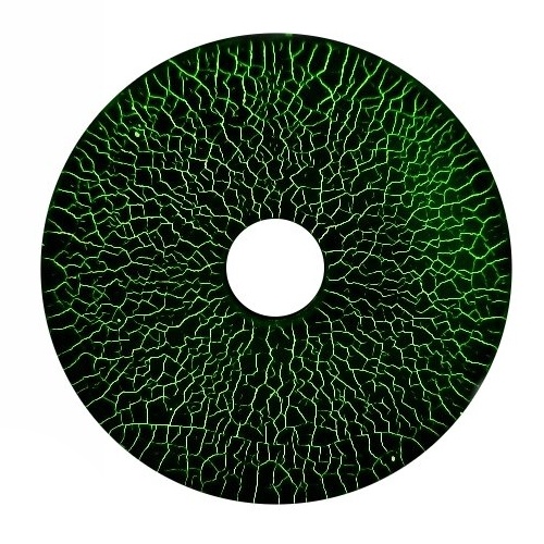 Špeciálna úprava povrchu trvalo magnetizovaného kovového disku vytvára prírodné, hrubé (vyrobeného brúsením) a jemné (napäťové), trhliny.