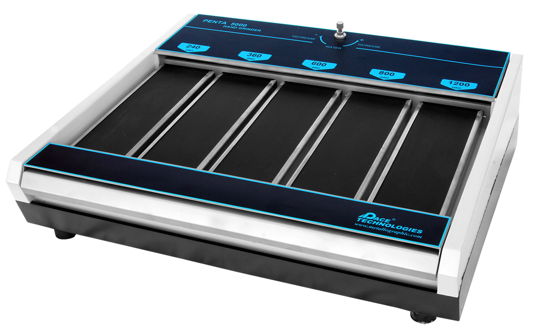 Penta 5000 PENTA-5000 je 5-polohová ručná brúska ktorá ponúka prípravu vzoriek pre malé laboratória na prezeranie makra v priebehu niekoľkých minút. PENTA-5000 je stacionárna brúska s použitím 3-7/16 x 60 rolkami so zrnitosťou 240, 360, 600, 800 a 1200.